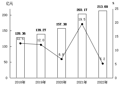 全年实现服务业增加值222.56亿元,比上年增长4.8%。其中批发业增加值23.6亿元,增长6.0%;零售业增加值30.28亿元,增长4.9%;住宿业增加值0.82亿元,增长4.7%;餐饮业增加值13.33亿元,增长0.7%;金融保险业增加值43.62亿元,增长4.9%;房地产业增加值26.48亿元,增长2.8%;交通运输、仓储和邮政业增加值18.27亿元,增长3.1%;其他服务业增加值65.04亿元,增长6.3%。全年规模以上服务业企业营业收入31.01亿元,增长26.9%。
