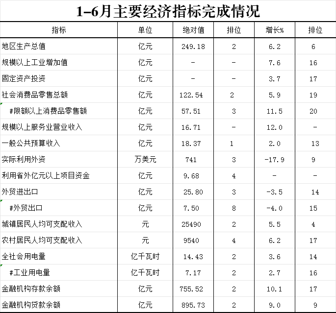 2025年1-6月主要经济指标完成情况