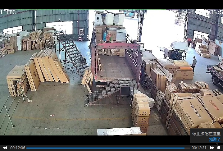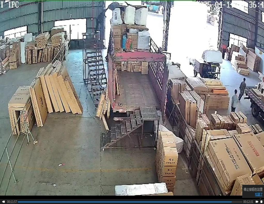 3.通过视频监控显示,李荣辉在使用简易货梯时,擅自解开了简易货梯滑轮锁扣未进行上锁,李荣辉上到简易货梯顶部将肩扛篷布抛到车上装好的货物上时,李荣辉顺手将篷布往里推了一下,因车上的货物略比李荣辉高,在李荣辉的抛送推力下,未锁扣滑轮的简易货梯向外滑动,导致李荣辉身体失重,从3米高的简易货梯上摔了下来。
