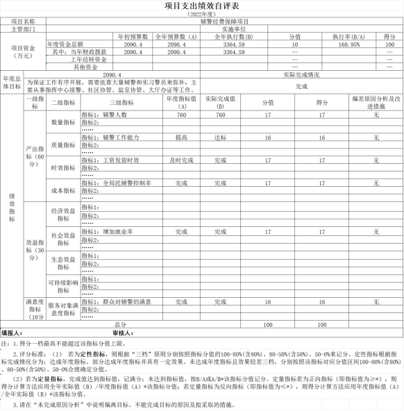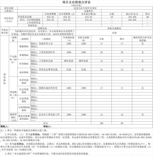 本部门公开“应急大队专项经费”、“辅警经费保障”项目部门评价报告(见附件)。