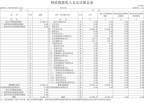 四、财政拨款收入支出决算总表