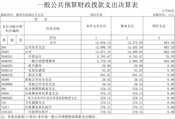 赣州市南康区公安局2022年度部门决算