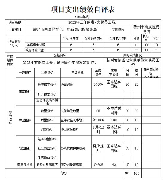 3.本单位“2023年工作经费(文保员工资)项目支出绩效自评表”如下:
