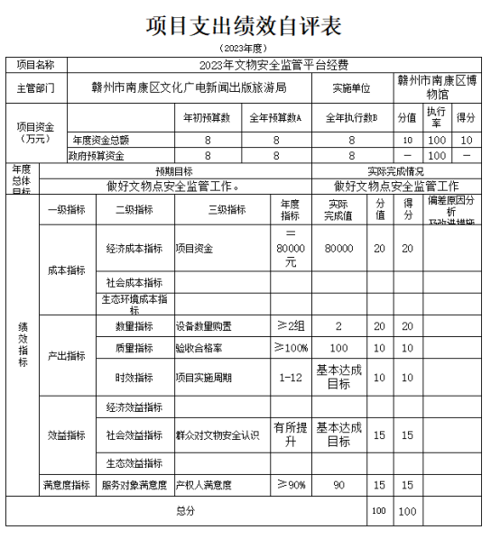 8.本单位“2023年博物馆纪念馆免费开放补助资金项目支出绩效自评表”如下: