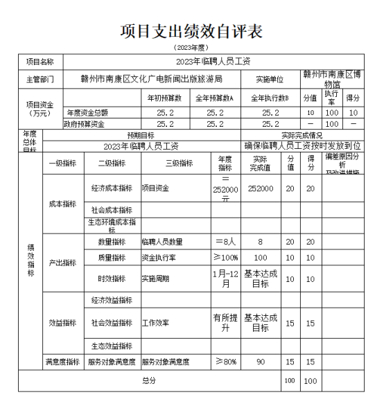 2.本单位“2023年临聘人员工资项目支出绩效自评表”如下: