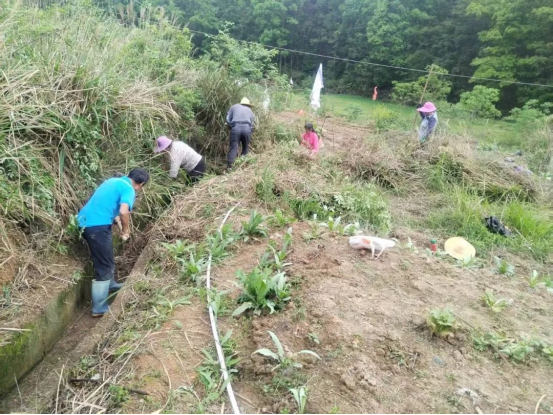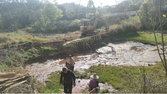 了解到旱坳、牛轭窝、谢屋排,羊狮脑等屋组大部分水渠水沟年久失修,杂草丛生,枯枝落叶堵塞,导致农田用水困难等群众反映强烈的农田灌溉问题。圳玄村党支部立即行动,组织有经验的师傅和脱贫户为上述村民小组进行水渠水沟清理工作。共清除渠道两侧杂草灌木6000余米,彻底清理沟渠内淤积堵塞物,并对800余米破损渠段进行混凝土加固修复,极大缓解了农事用水问题。图为清理沟渠堵塞淤堵物作业现场。
