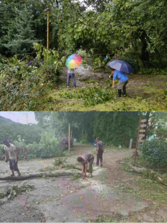 了解到受今年第1号台风"蝴蝶"影响,蕉溪村多处树木枝干在狂风中断裂,大量断枝散落村道,严重阻碍村民出行并存在安全隐患。蕉溪村党支部立即启动应急响应:一是组织人员快速清理路面断枝;二是全面排查并清除树上悬挂的危险断枝;三是规范转运所有清理物至指定堆放点。经过紧急处置,村道于当日恢复畅通,安全隐患得到有效排除。图为清理树木断枝工作场景。