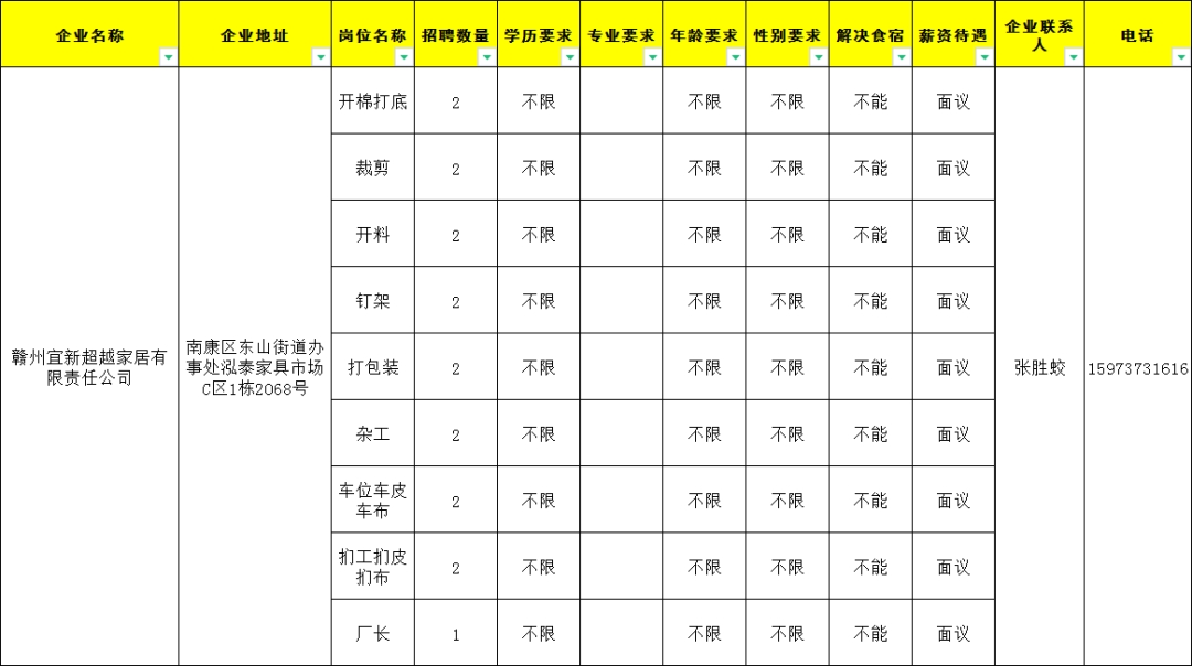 7.软包工1人,18岁至45岁,工资5000元至8000元;