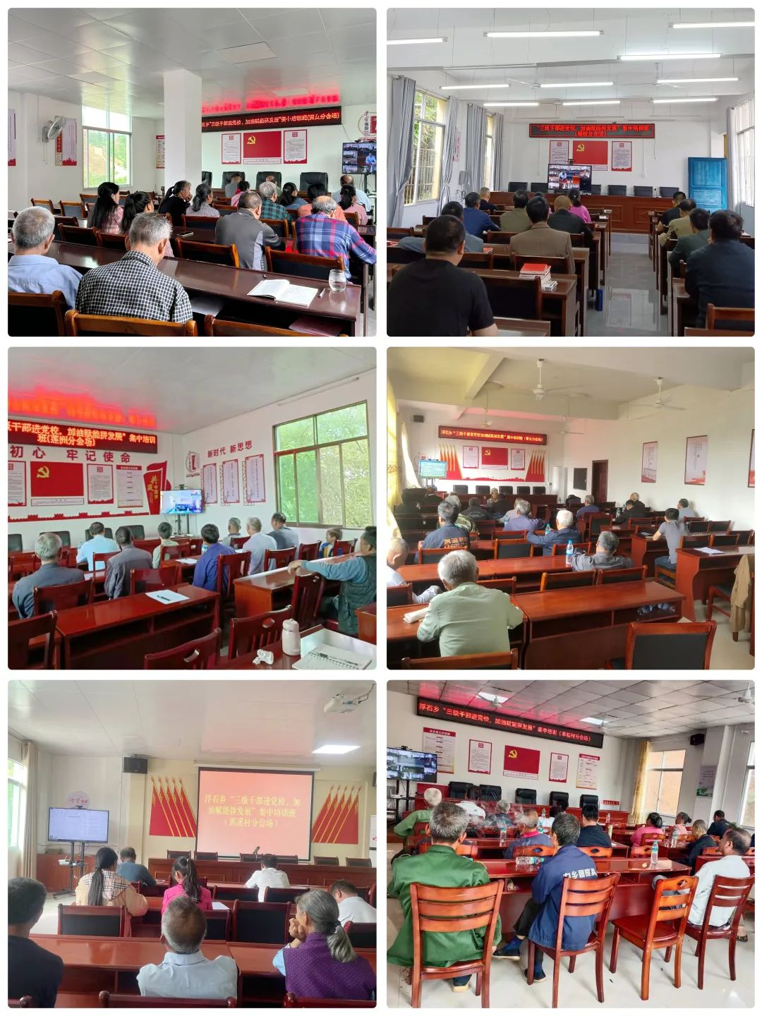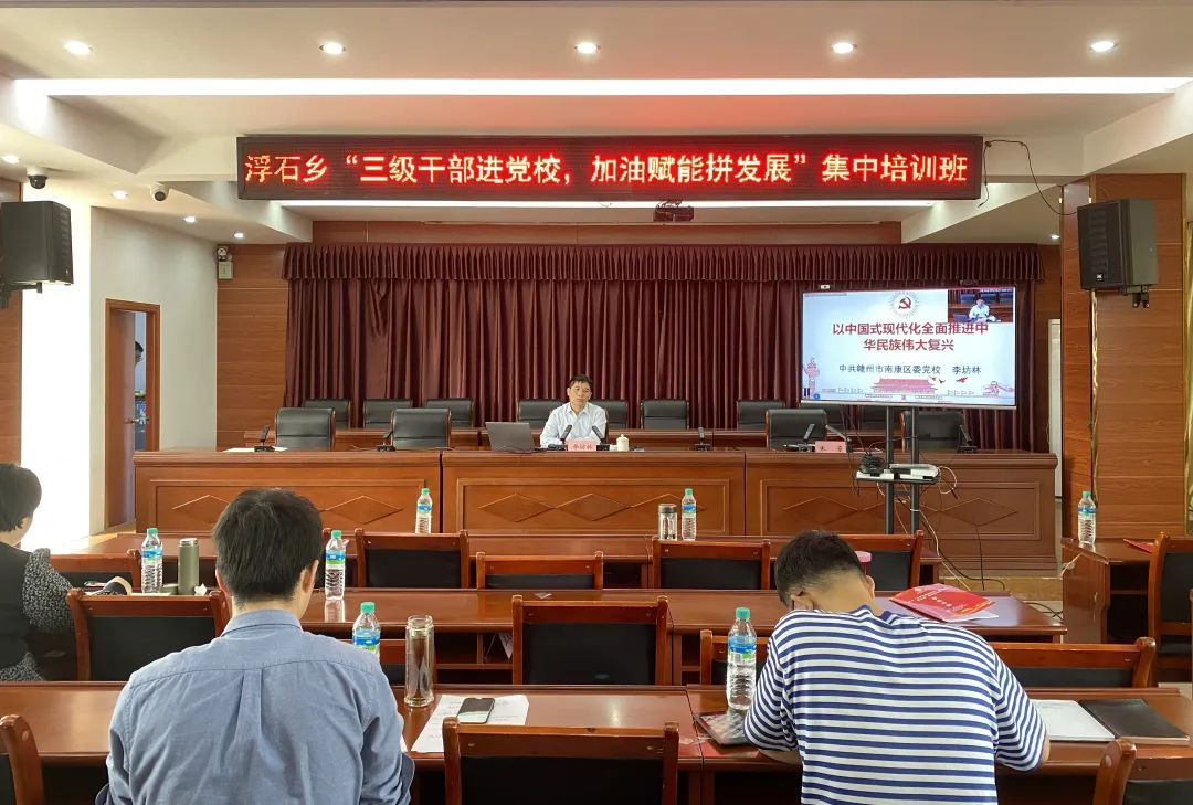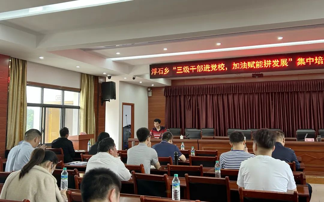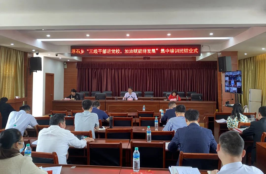 培训班充分利用乡党委党校这一教育培训阵地,并通过远程会议视频系统,线上线下高效结合集中教育培训,设浮石乡政府主会场和各村分会场,全体乡、村、组三级干部及全体驻村工作队员共计200余人参加。