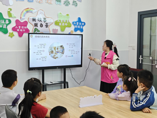 梁老师通过小游戏,吸引小朋友们的注意力,引导小朋友们进入课堂。课堂上,小朋友们积极与老师互动,从认识情绪、释放情绪到调节情绪三个层次,让小朋友们认识到情绪对人们的影响,并学会了调节情绪的一些方法。