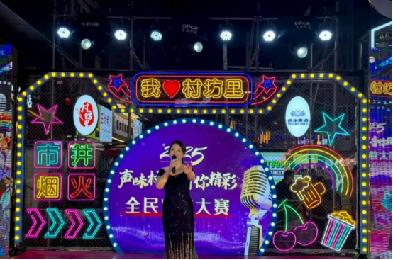这是南水村坊里美食街举办的第一届全民K歌歌唱比赛。比赛旨在为热爱声乐表演的业余歌手创造一个展示自我风采、提升舞台表现力、提高演唱技巧、拓宽艺术视野的机遇。歌唱比赛与美食街的互动,推动“音乐+场景+市集+美食”等多元业态融合发展,丰富消费场景,进一步提振消费,丰富南水及周边居民的业余生活。