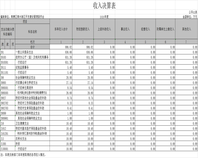 纳入本套部门决算汇编范围的单位共1个,包括:南康区南水开发办。