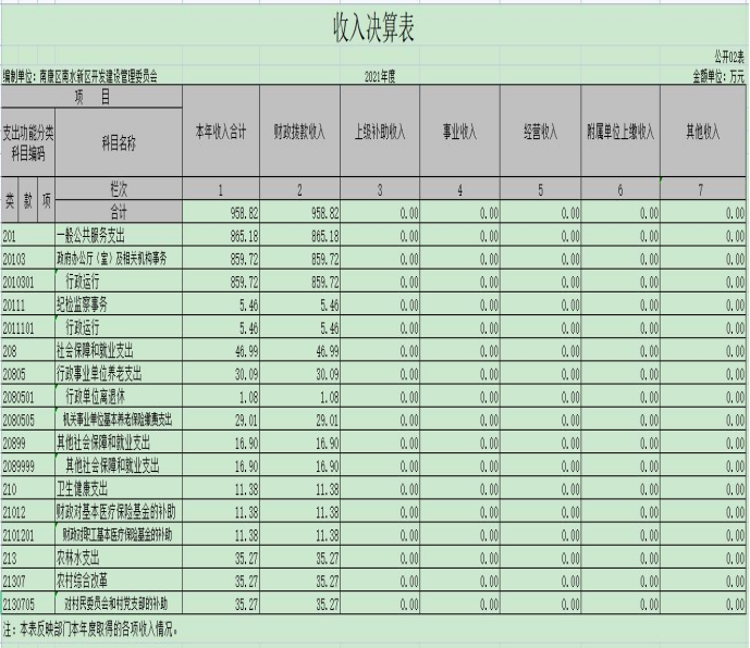 纳入本套部门决算汇编范围的单位共1个,包括:南康区南水开发办本级。