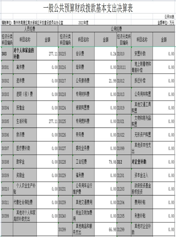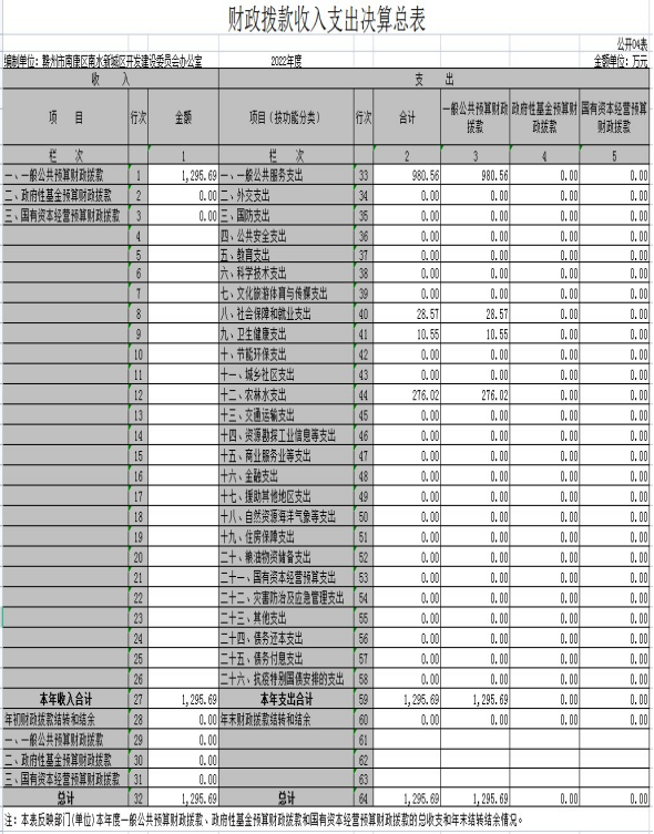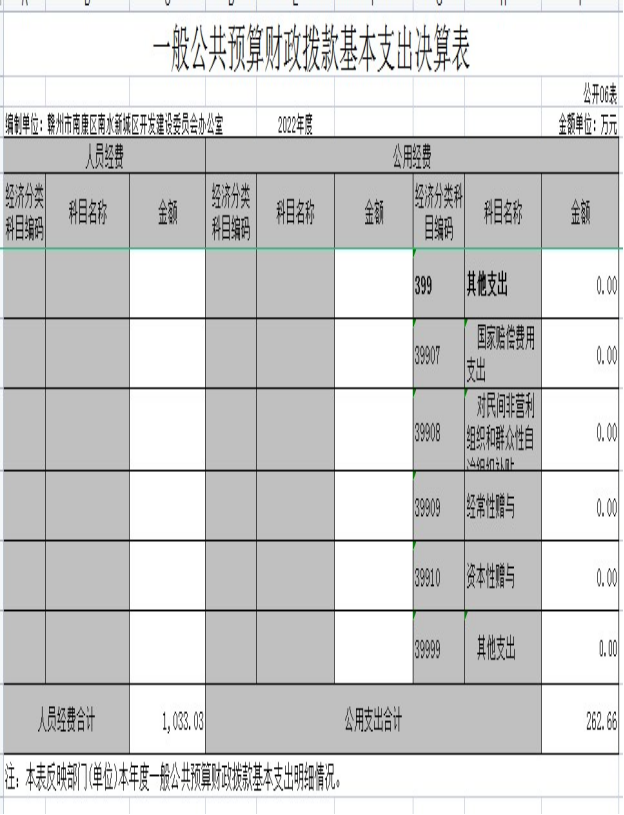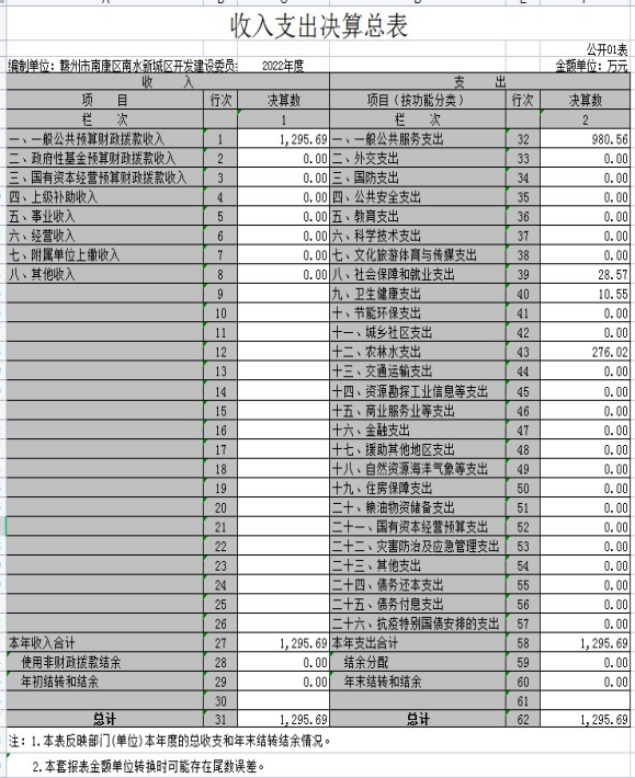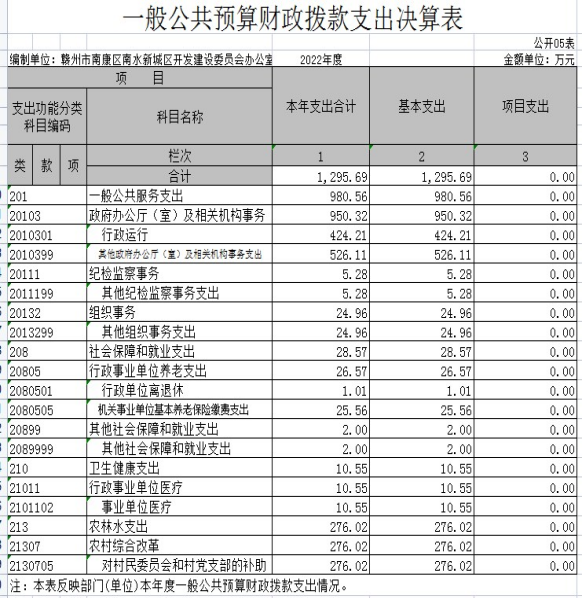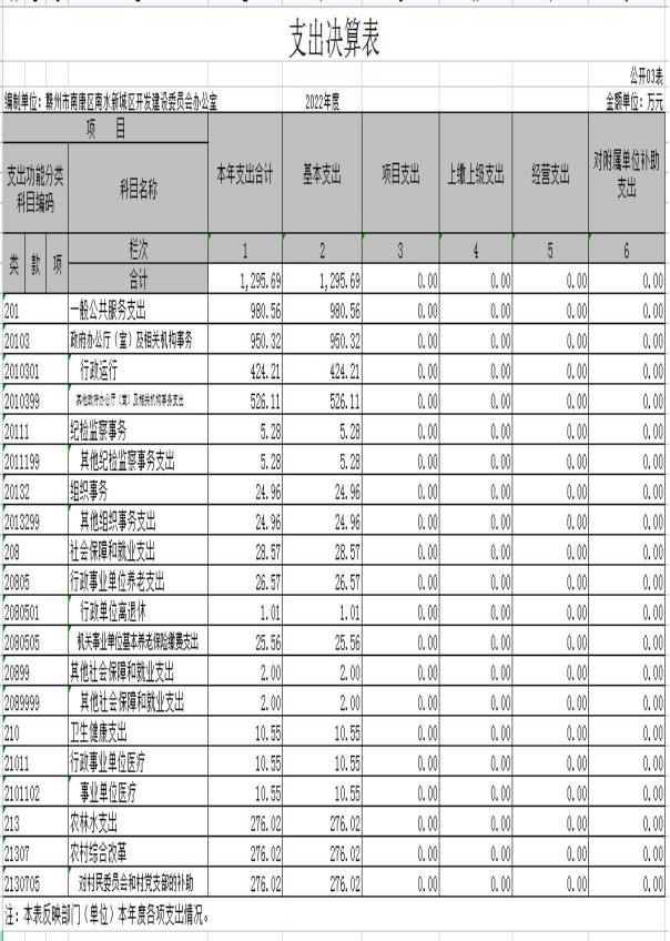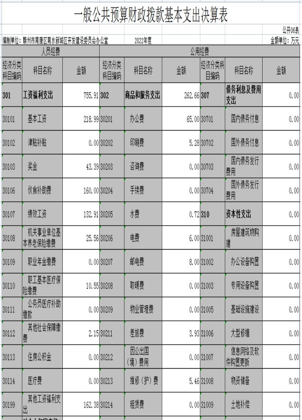 赣州市南康区南水新城区开发建设委员会办公室2022年度部门决算