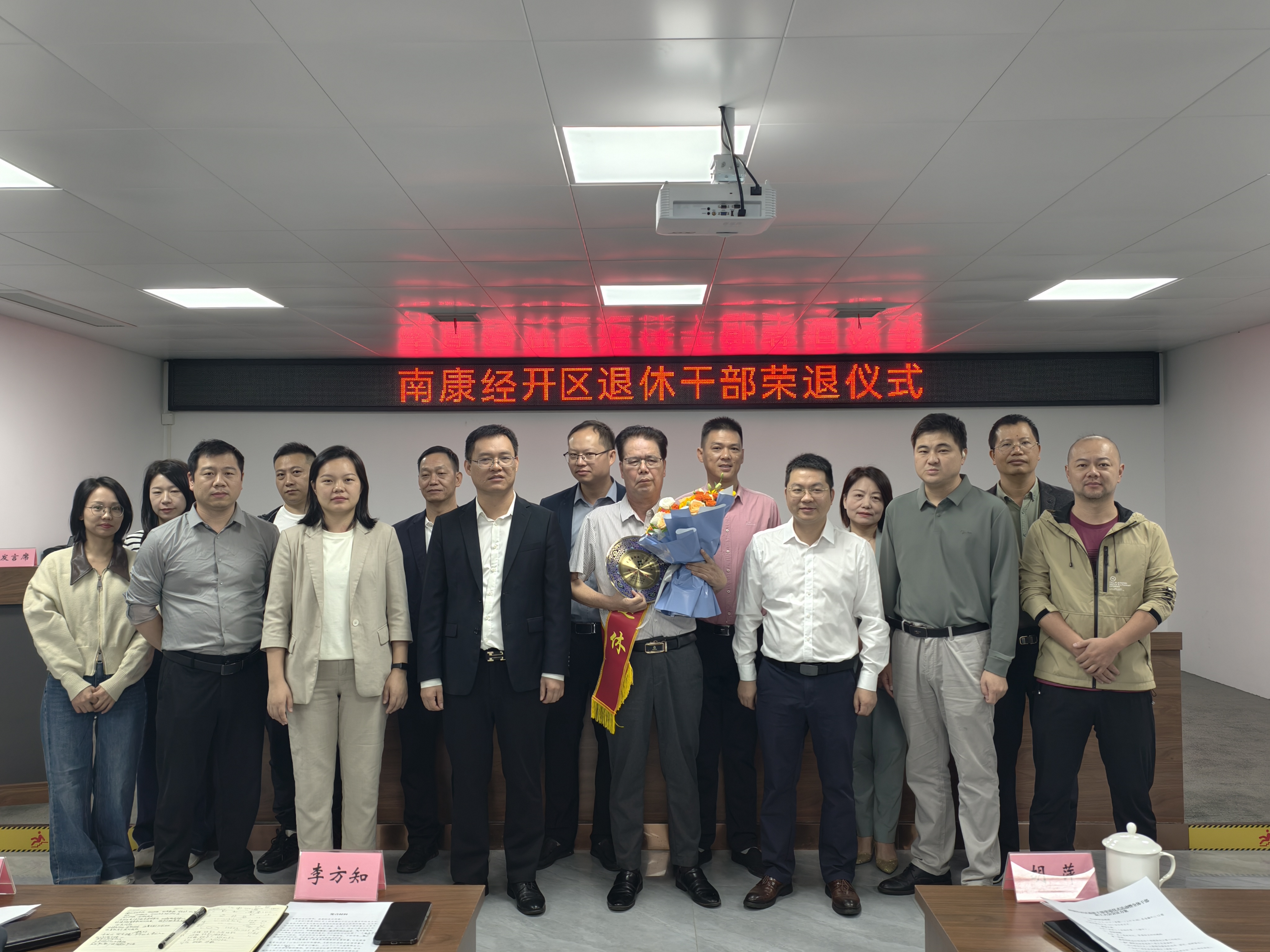 2025年10月20日上午,南康经开区组织召开退休干部荣退仪式活动,为胡萍同志举行光荣退休仪式。南康经开区党工委副书记、管委会主任刘鸿伟主持仪式,全体领导干部职工参加仪式活动。