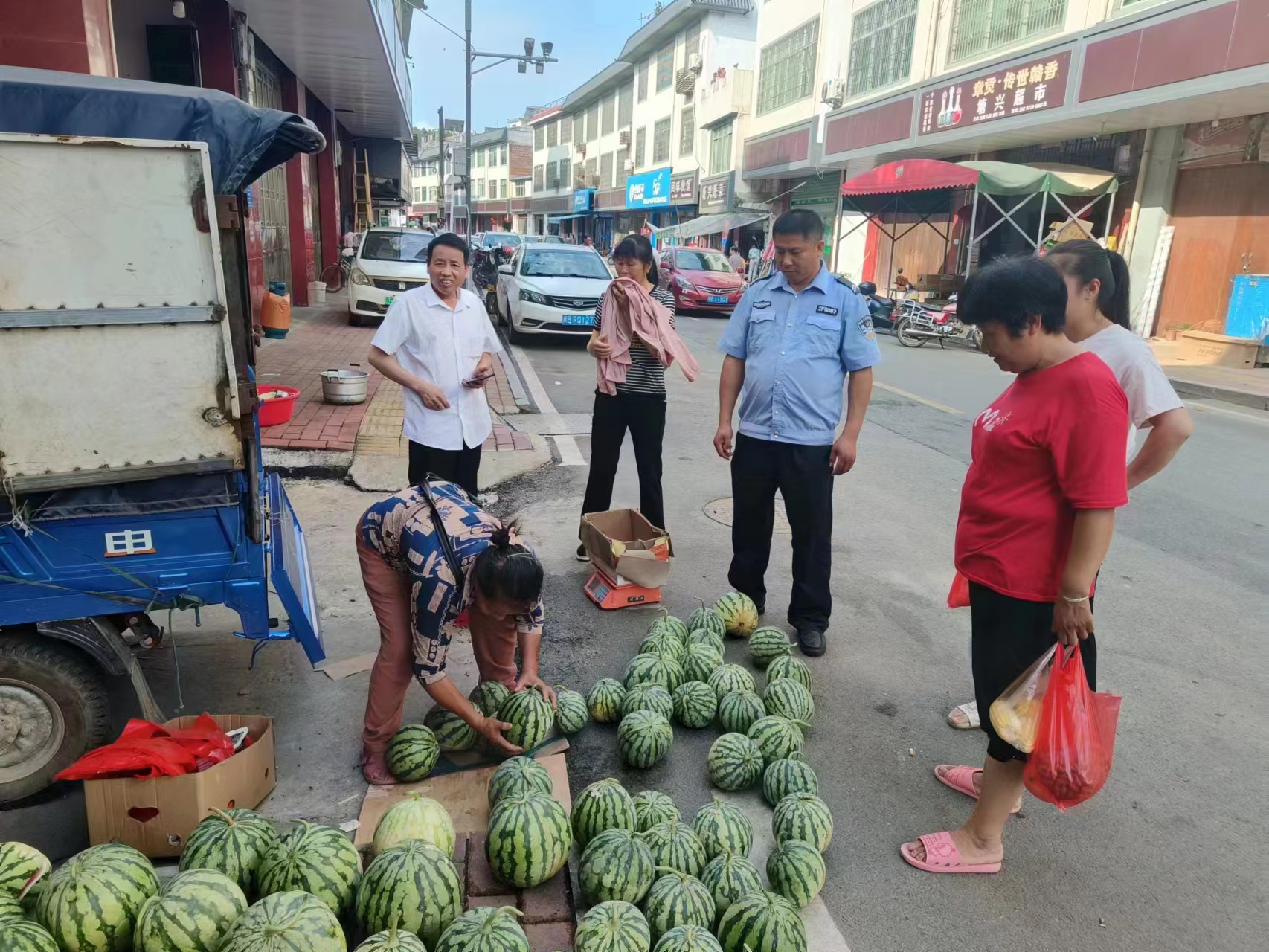 十八塘乡执法队员在辖区街上进行圩镇整治,对出店经营,乱摆乱放等现象及时劝阻并要求整改