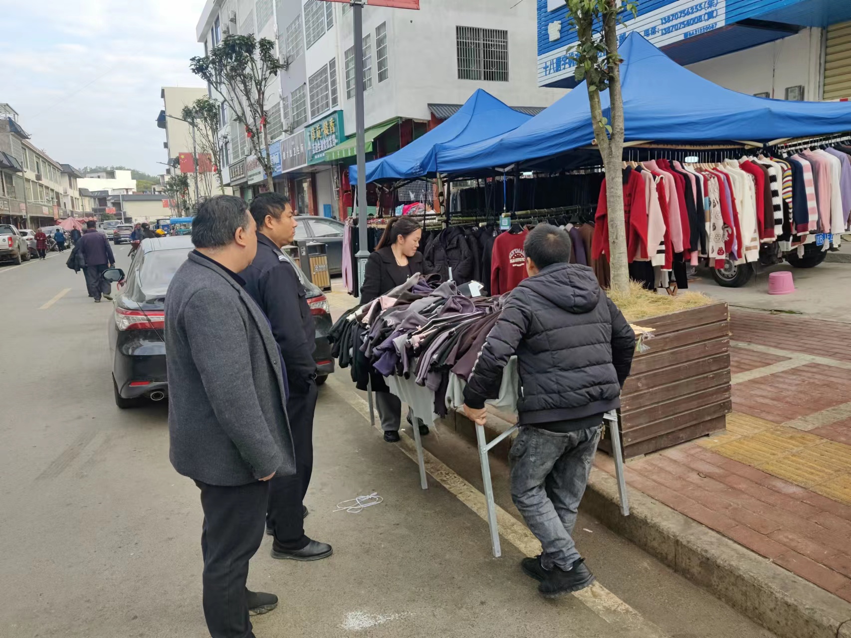 十八塘乡执法队员在圩镇整治占道经营