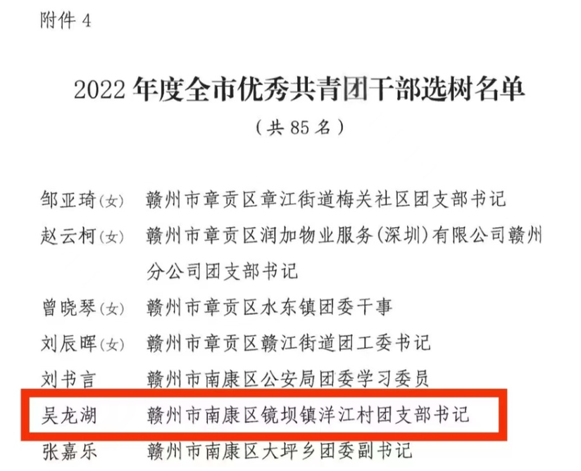 吴龙湖同志获评“全市优秀共青团干部”