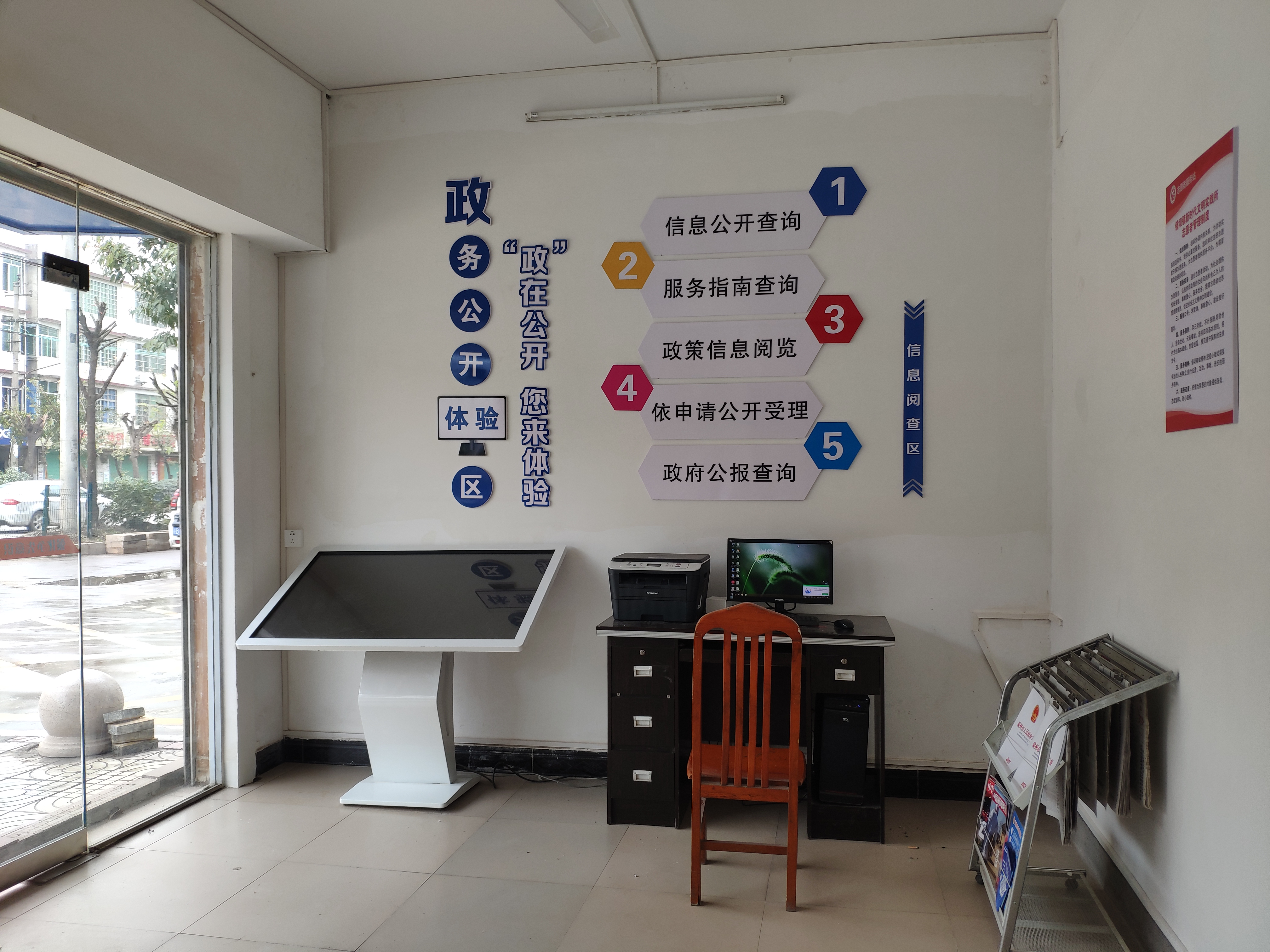 镜坝镇已在便民服务中心大厅里设置了政务公开的专区,以便来大厅的办理业务的人们可以很清楚地看到政府的信息公开。