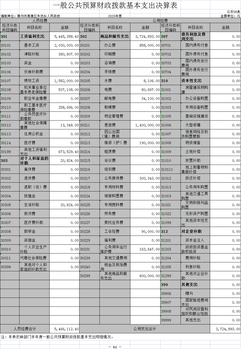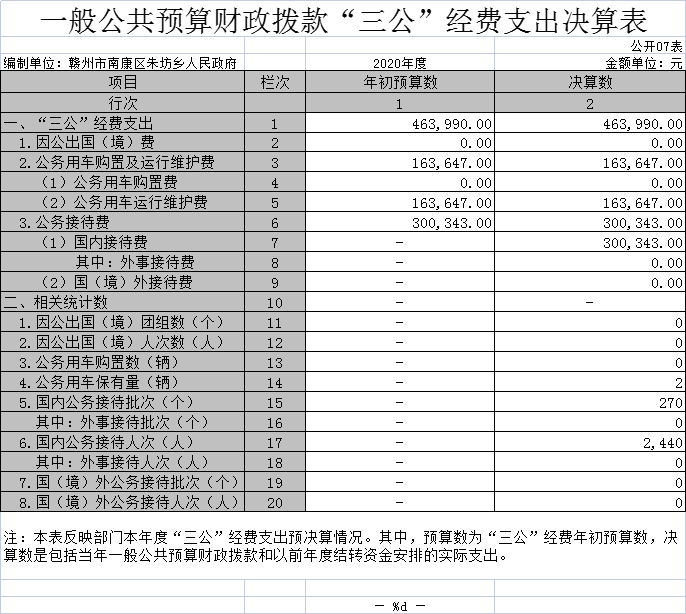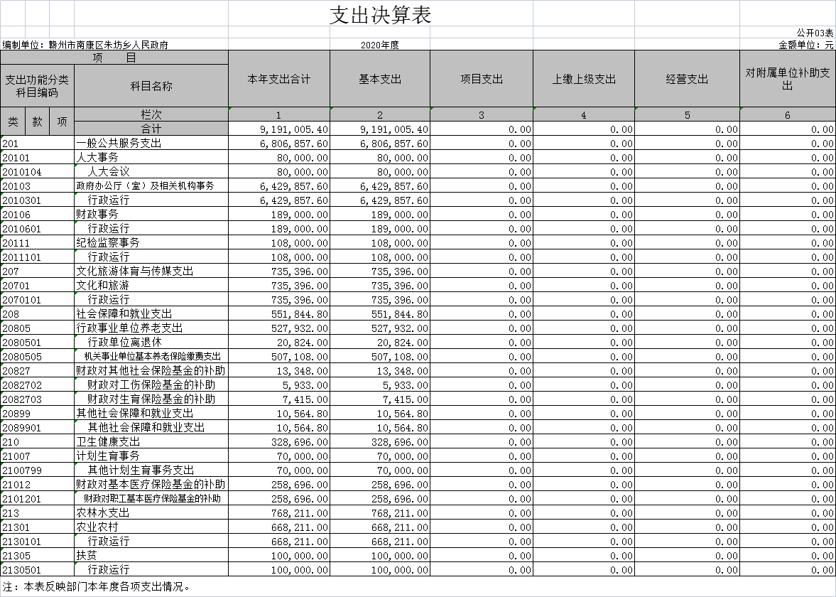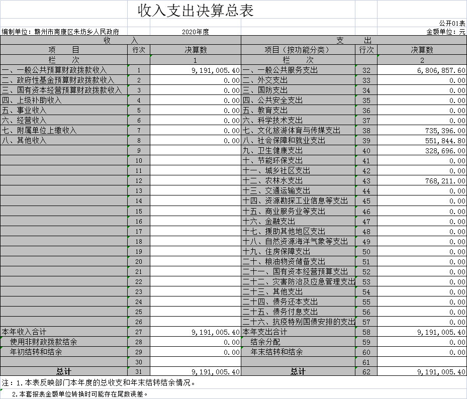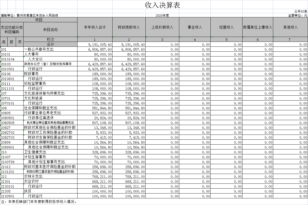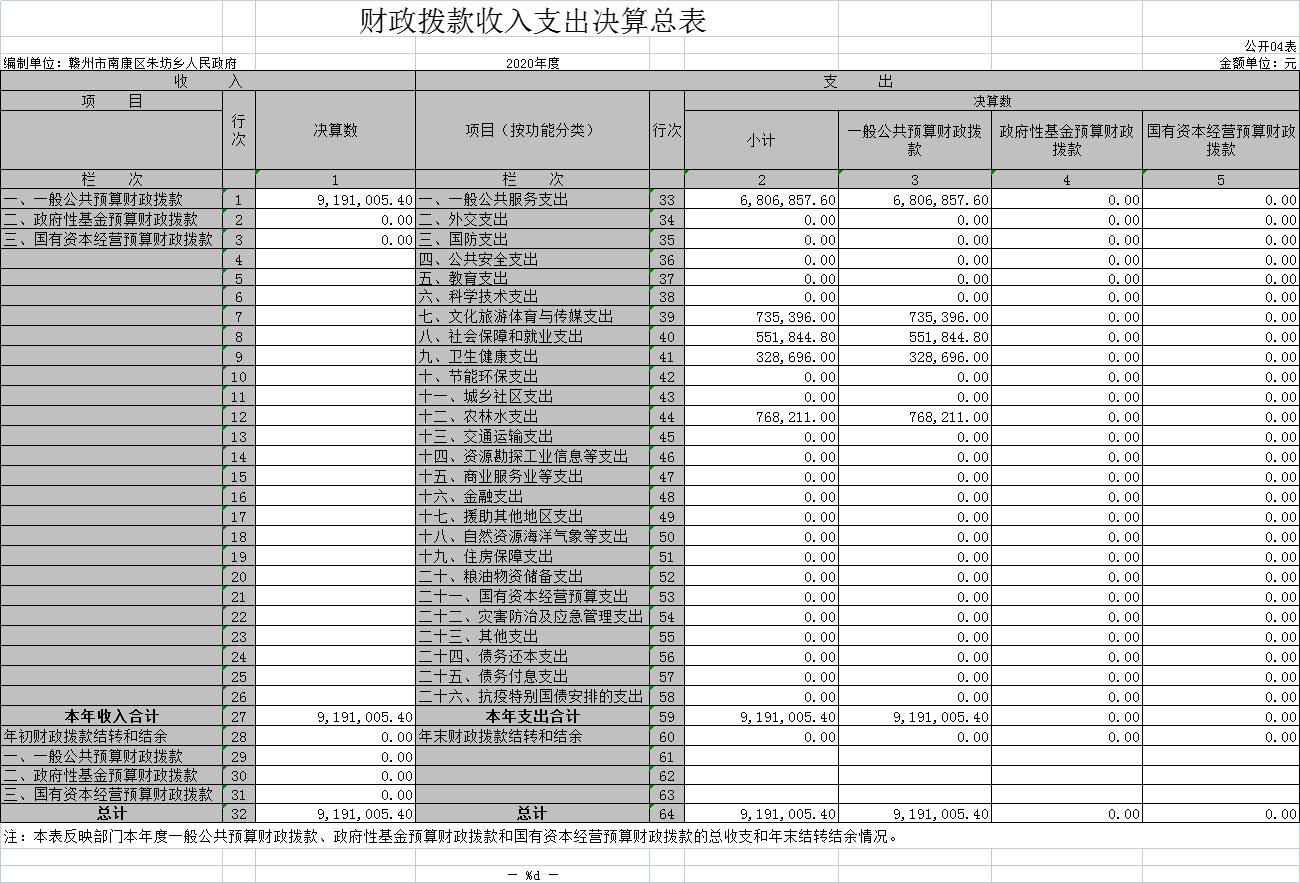朱坊乡人民政府2020年度部门决算