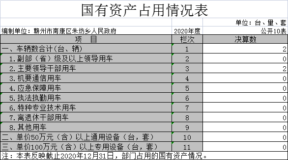 截止2020年12月31日,本部门(单位)国有资产占用情况见公开10表《国有资产占用情况表》。其中车辆中的其他用车主要是主要领导干部用车。