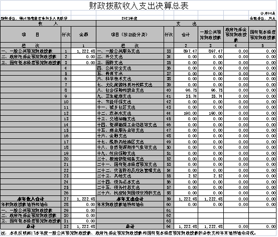 注:1.本表反映部门本年度的总收支和年末结转结余情况。 |