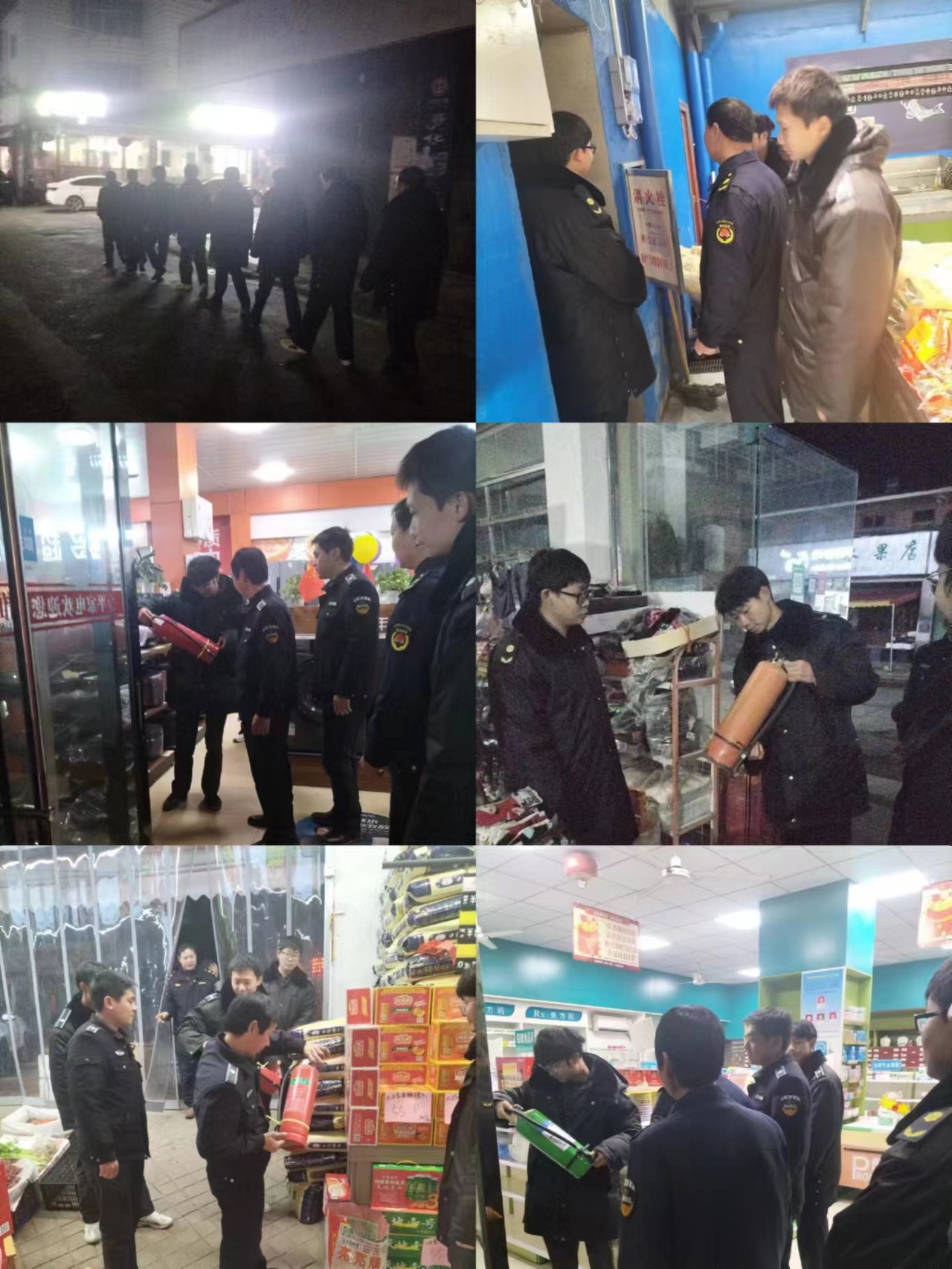 朱坊执法队巡查沿街商铺火灾防范措施、现场监护电气线路、用电设施、装饰材料是否符合要求,消防水源、消防设施器材是否完好有效、疏散通道是否畅通等问题。