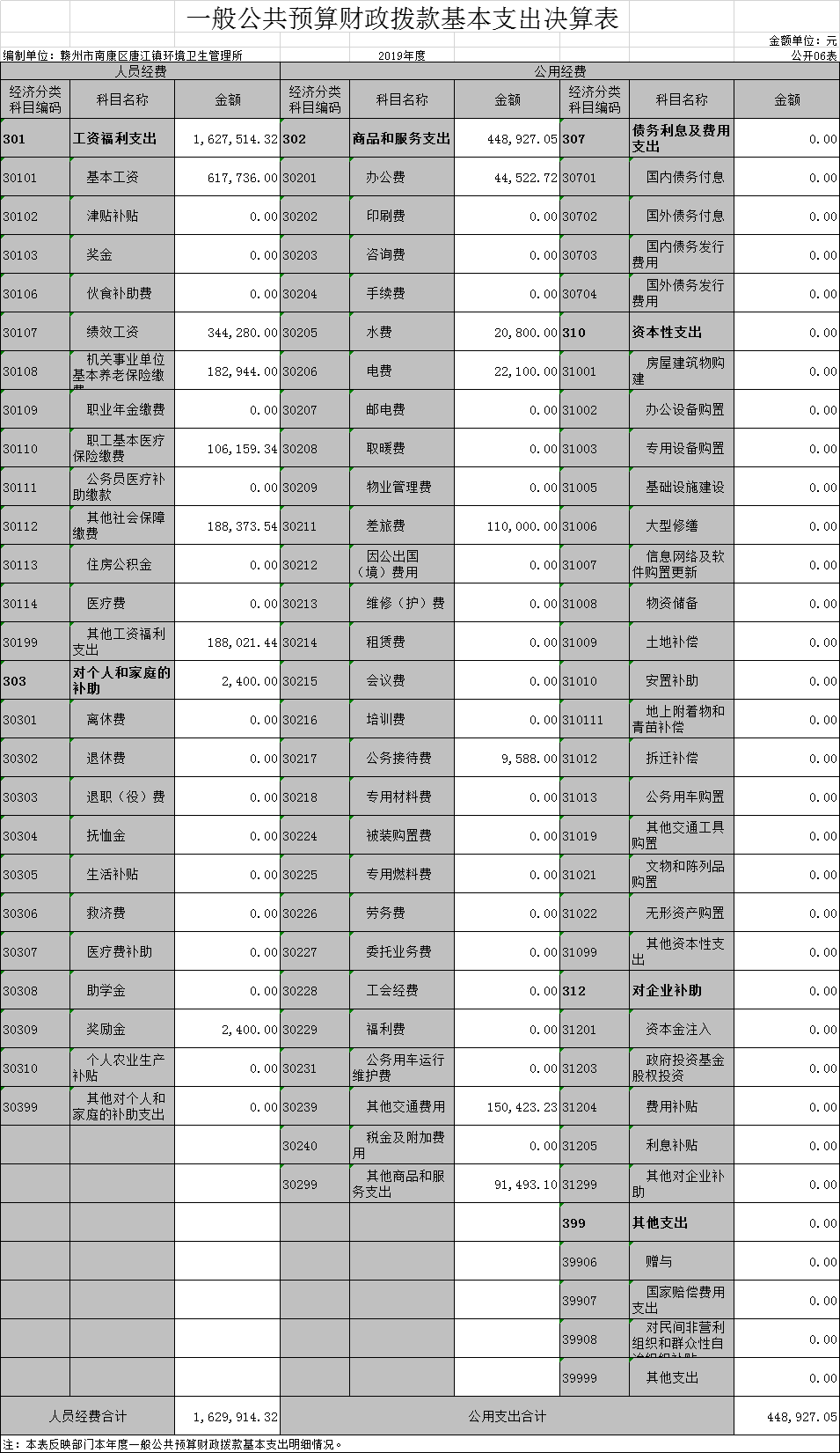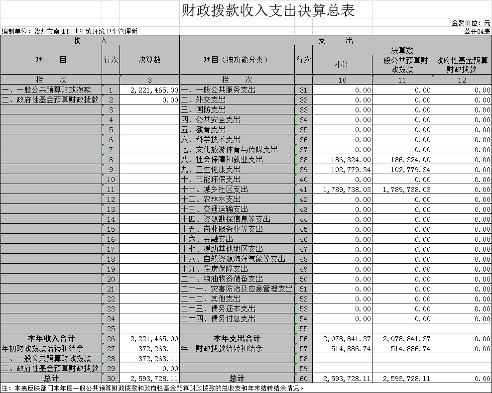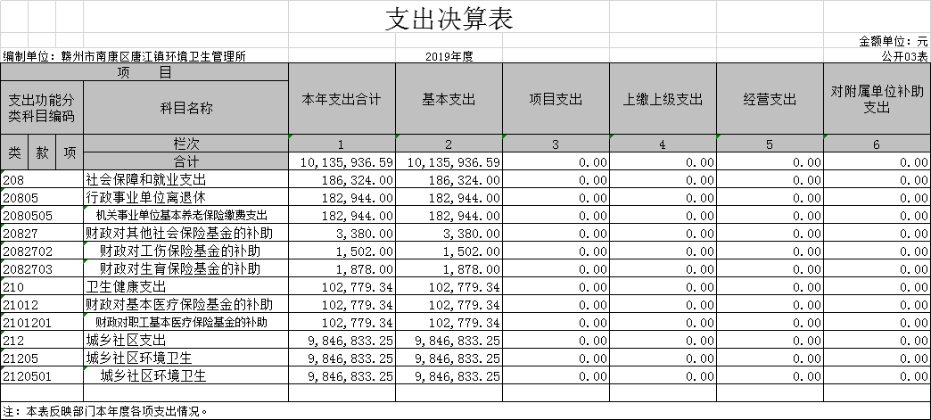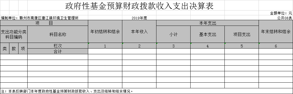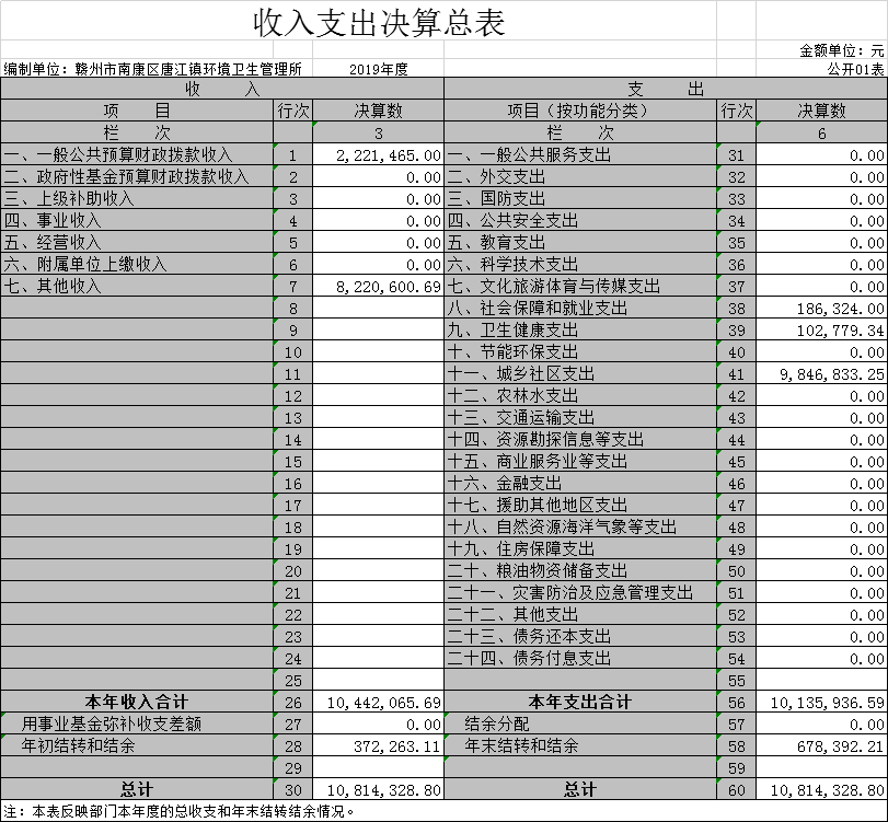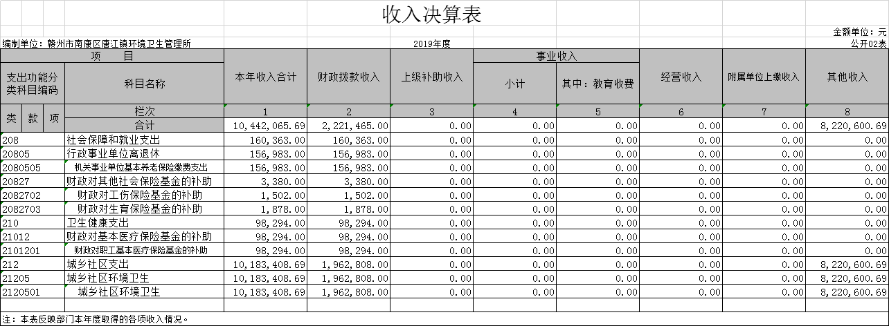 赣州市南康区唐江镇环境卫生管理所2019年度部门决算