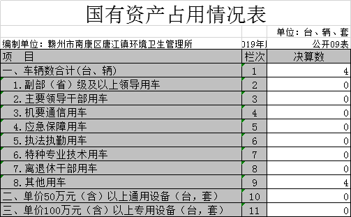 截止2019年12月31日,本部门国有资产占用情况见公开09表《国有资产占用情况表》。其中车辆中的其他用车主要是垃圾清运车。