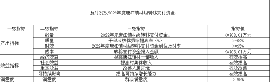 7)绩效目标和指标:绩效目标为保证唐江镇全年机关正常运转,各项项目实施取得有效进展,乡村振兴项目推进更加有力,为南康争当赣州打造对接融入粤港澳大湾区桥头堡的排头兵贡献唐江力量。