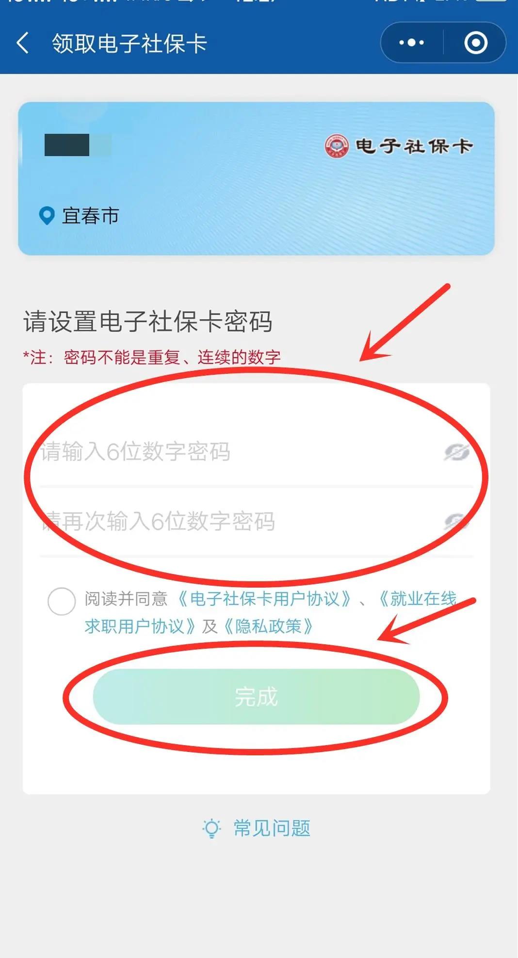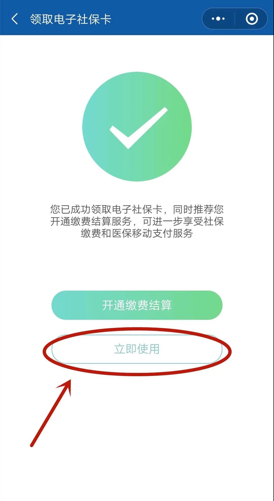 第五步:设置电子社保卡密码,勾选“协议”后,成功领取电子社保卡,点击立即使用。