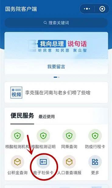 第二步:进入“国务院客户端”首页,点击“电子社保卡”并领取电子社保卡。