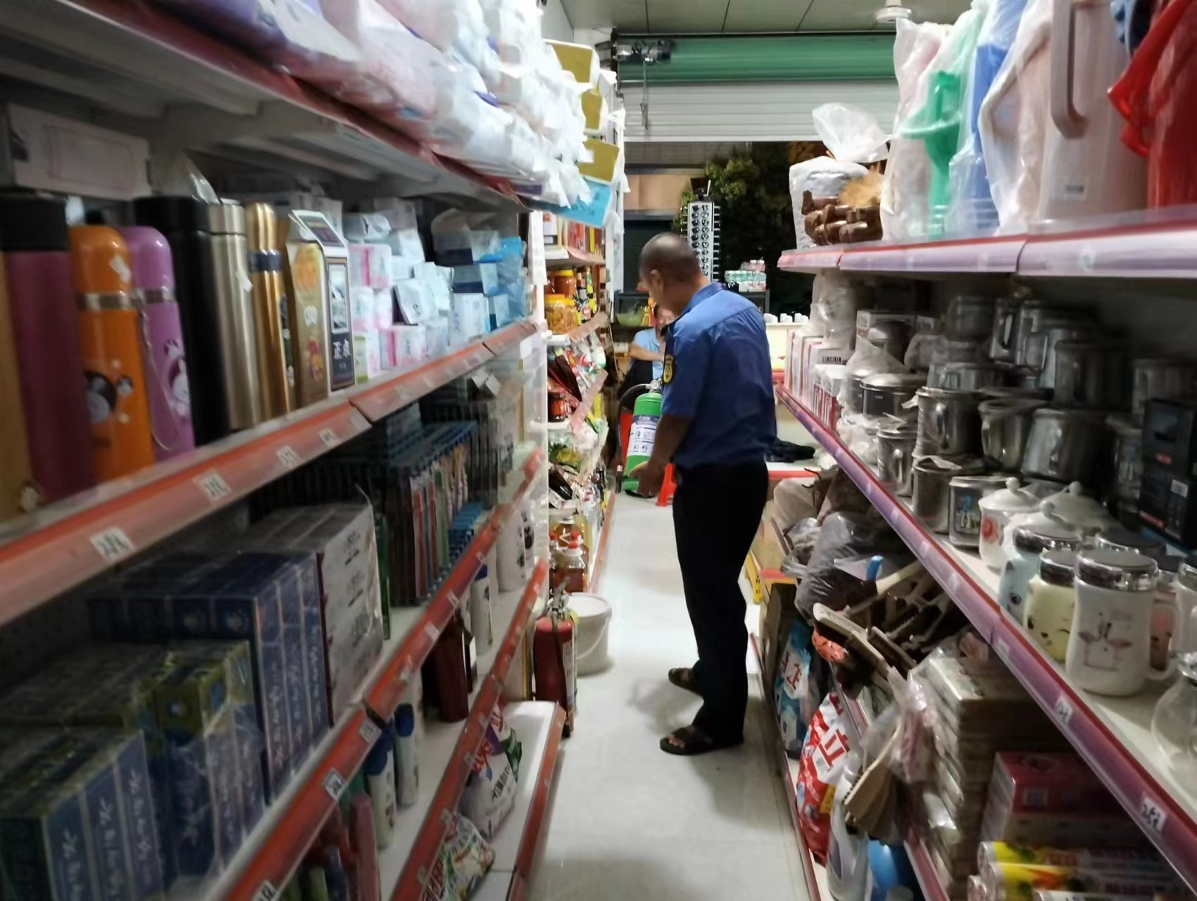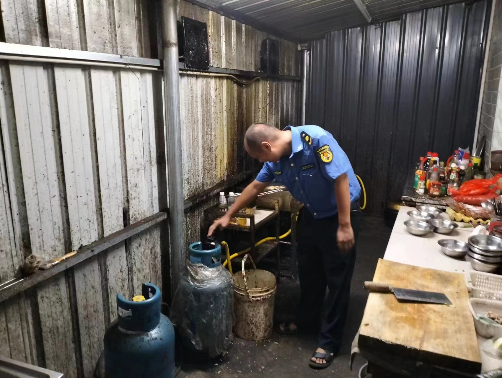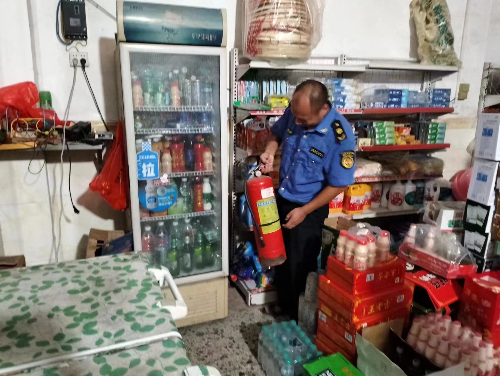 乡综合行政执法大队对各店铺,餐饮店,用电用燃气煤气防火夜间巡查
