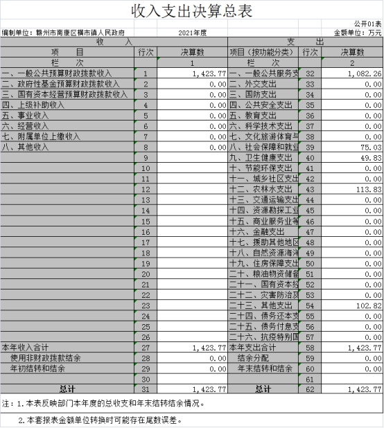 纳入本套部门决算汇编范围的单位共1个,包括:赣州市南康区横市镇人民政府。