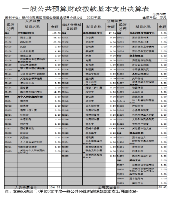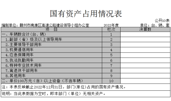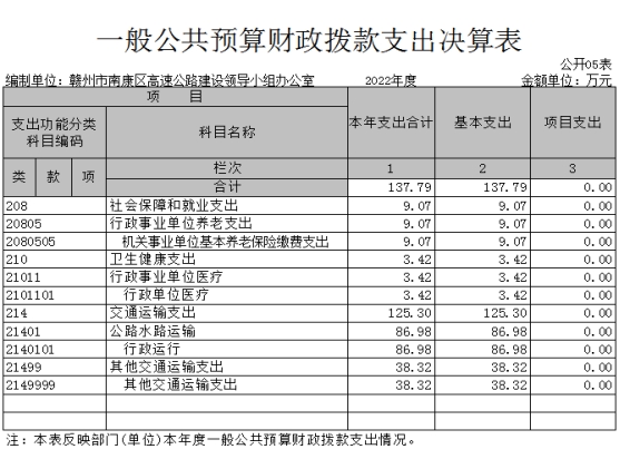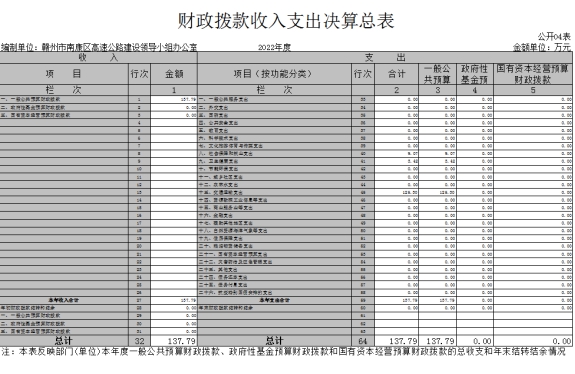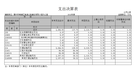 赣州市南康区高速公路建设领导小组办公室单位2022年度决算