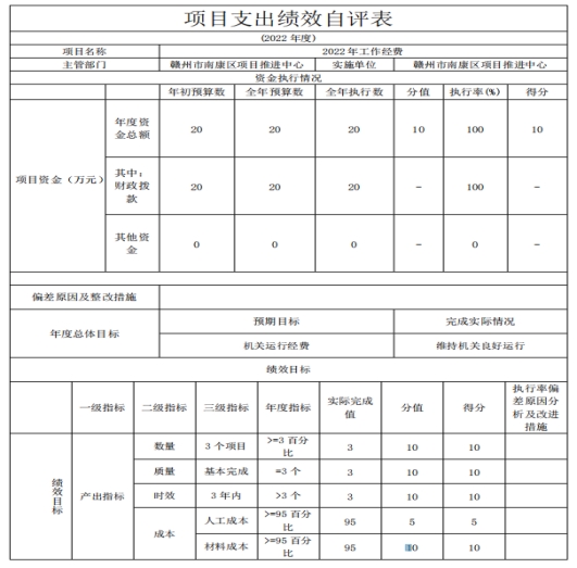 将2022年度《项目支出绩效自评表》(自选1个项目)进行公开。