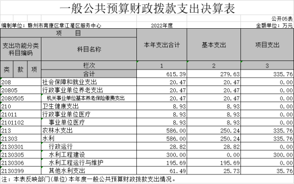 本单位设立1个内设机构,是赣州市南康区章江灌区服务中心。本单位2022年年末实有人数20人,其中在职人员 16 人,离休人员0人,退休人员4人(不含由养老保险基金发放养老金的离退休人员);年末其他人员22人;年末学生人数0人;由养老保险基金发放养老金的离退休人员31人。