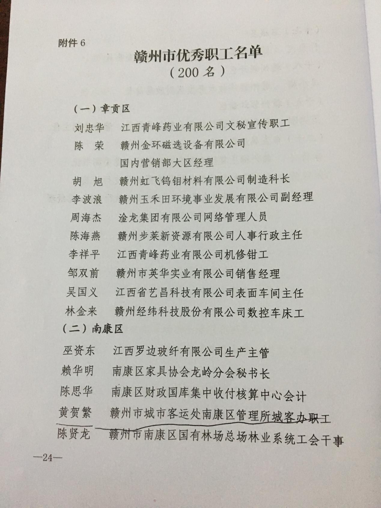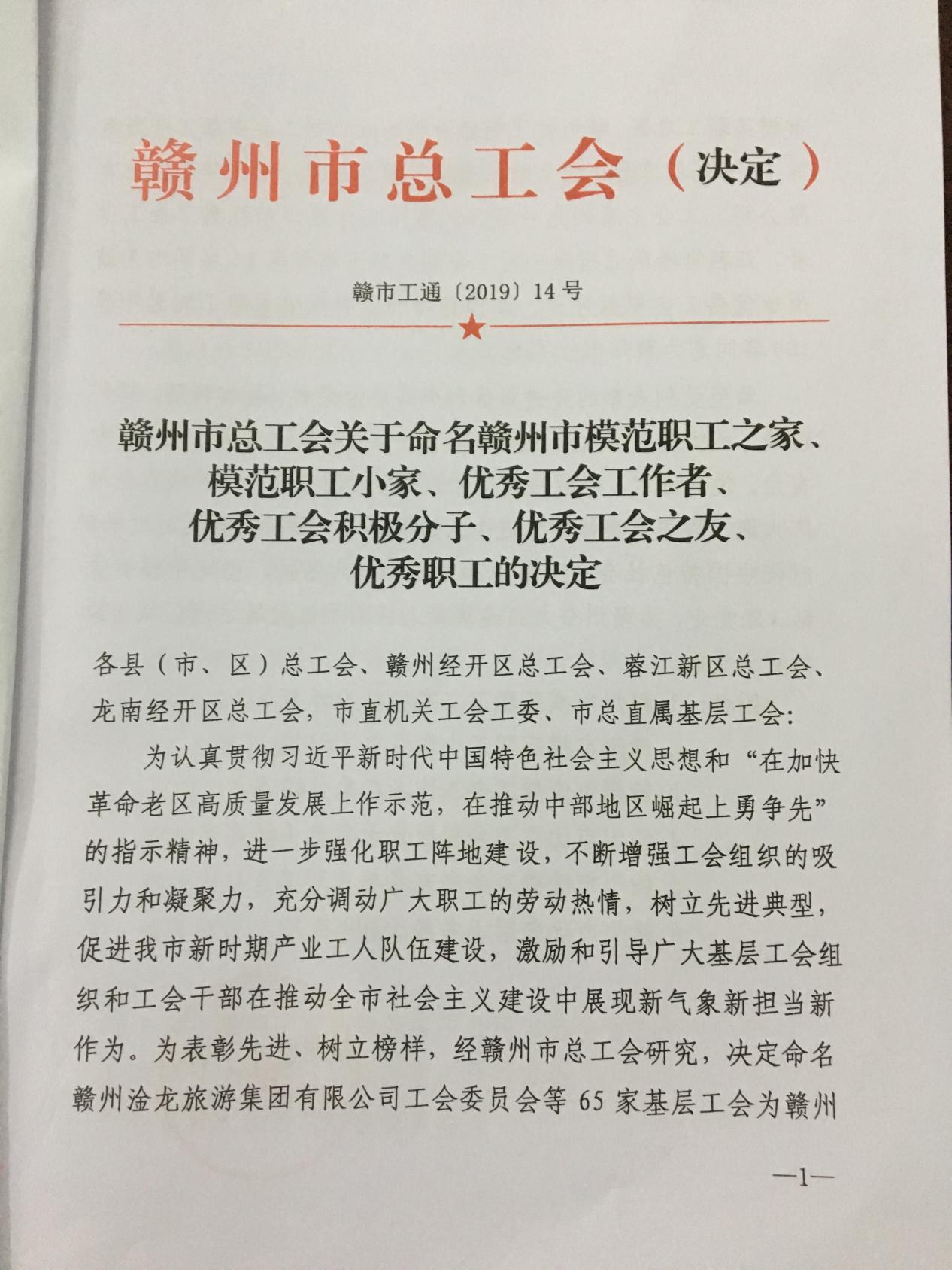 赣州市总工会关于命名赣州市模范职工之家、模范职工小家、优秀工会工作者、优秀工会积极分子、优秀工会之友、优秀职工的决定