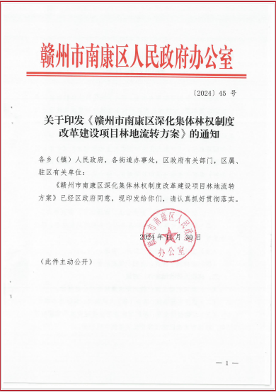 【已废止】关于印发《赣州市南康区深化集体林权制度改革建设项目林地流转方案》的通知