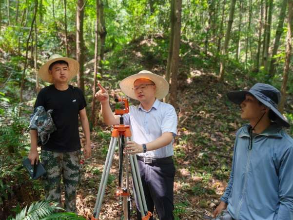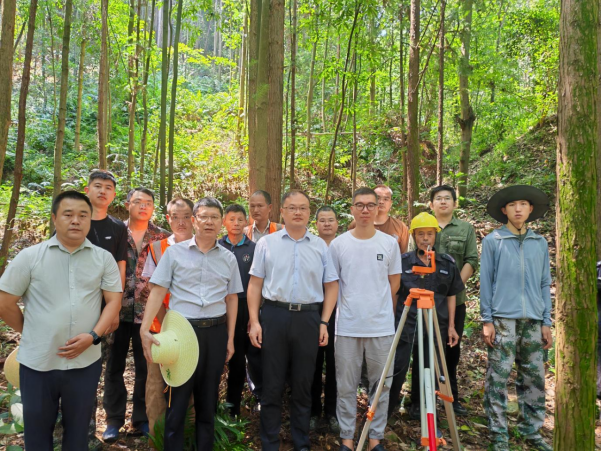 在浮石乡江口村4597号森林样地,李志彪局长深入一线与调查组亲切交谈,详细询问调查工作的具体细节。从样地周界的精准定位,到每木检尺时胸径、树高的测量方法,再到数据记录的规范流程,局长逐一了解,并亲自拿起测径尺、水准仪等专业设备,体验坡度测量等调查环节,切身感受野外调查工作的艰辛与不易。