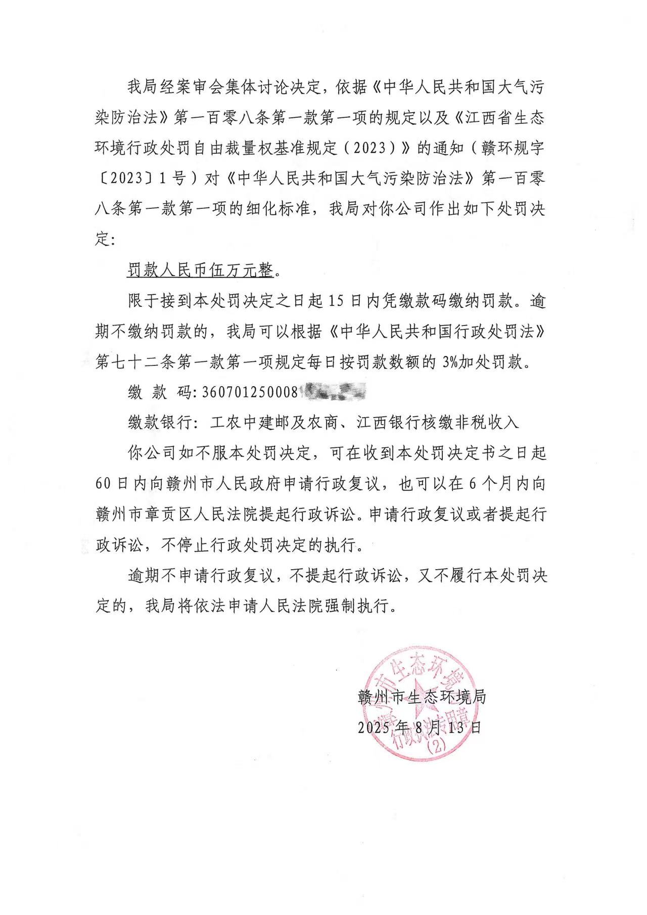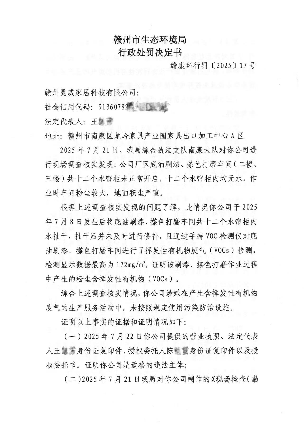 赣州晁威家居科技有限公司行政处罚决定书