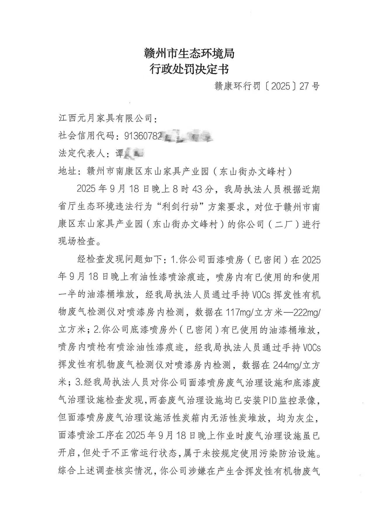江西元月家具有限公司行政处罚决定书