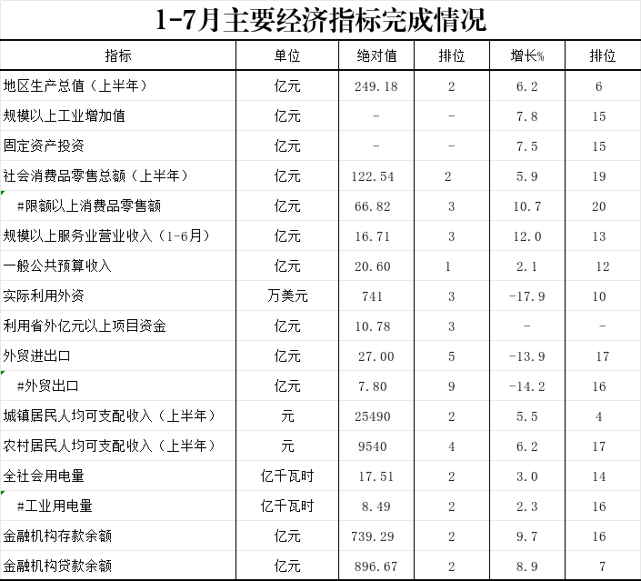 2025年1-7月主要经济指标完成情况
