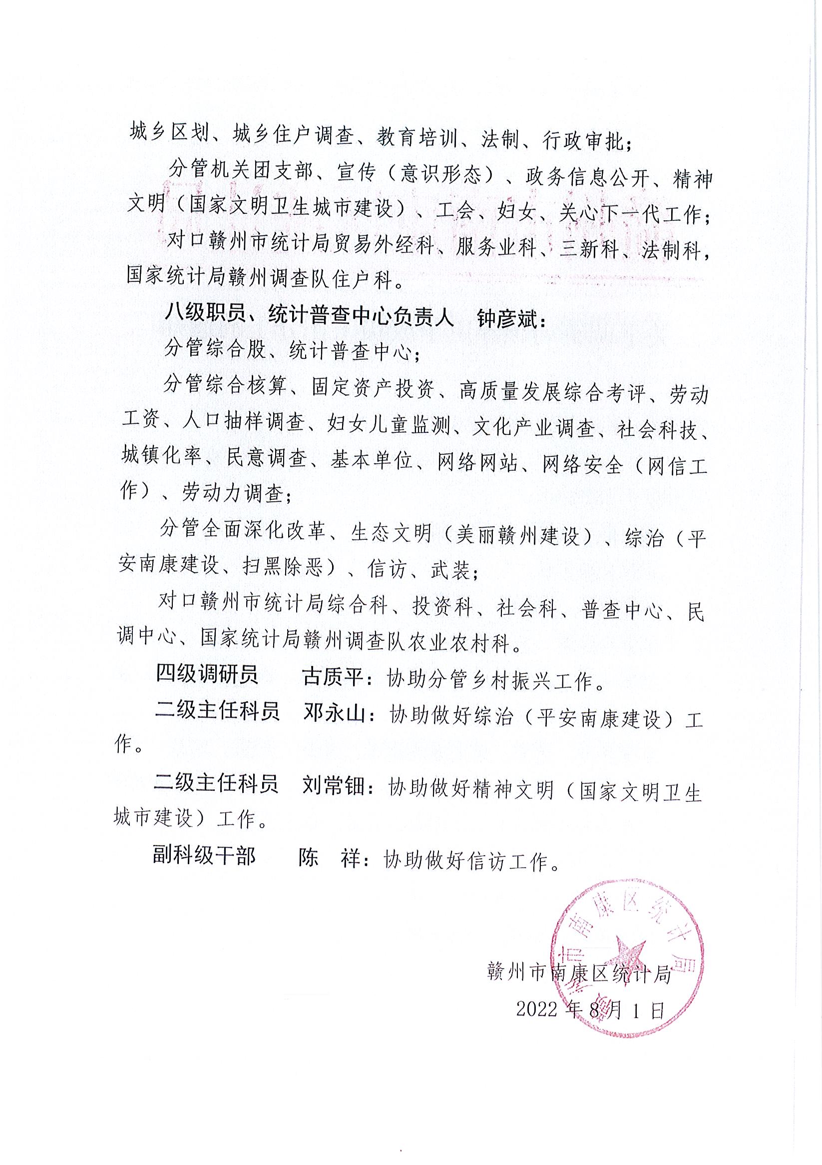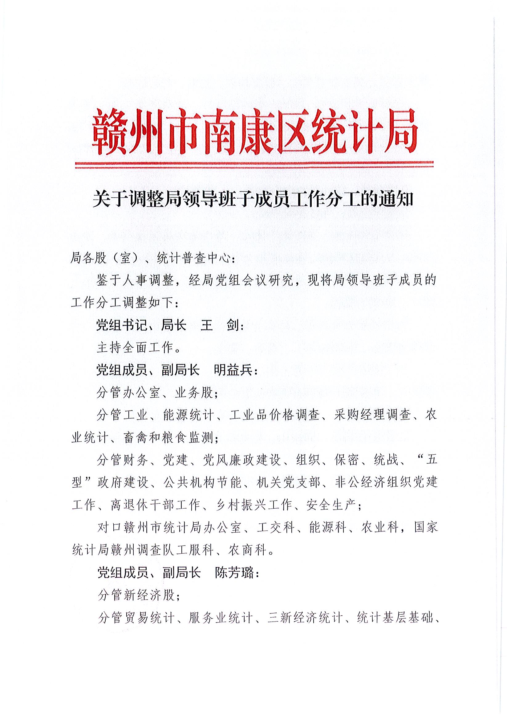关于调整局领导班子成员工作分工的通知