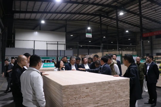 考察团一行参观考察了江西省益佳木业有限公司,深入生产车间、环保工艺区及产品展示中心,实地观摩板材全流程生产,近距离了解智能化生产工艺、严苛品质管控标准与绿色环保处理技术。此次考察直观呈现了优质板材的生产核心,为南康家具人优化原材料甄选、强化品质管控提供了实操参考,进一步夯实了产业上下游协同的基础。