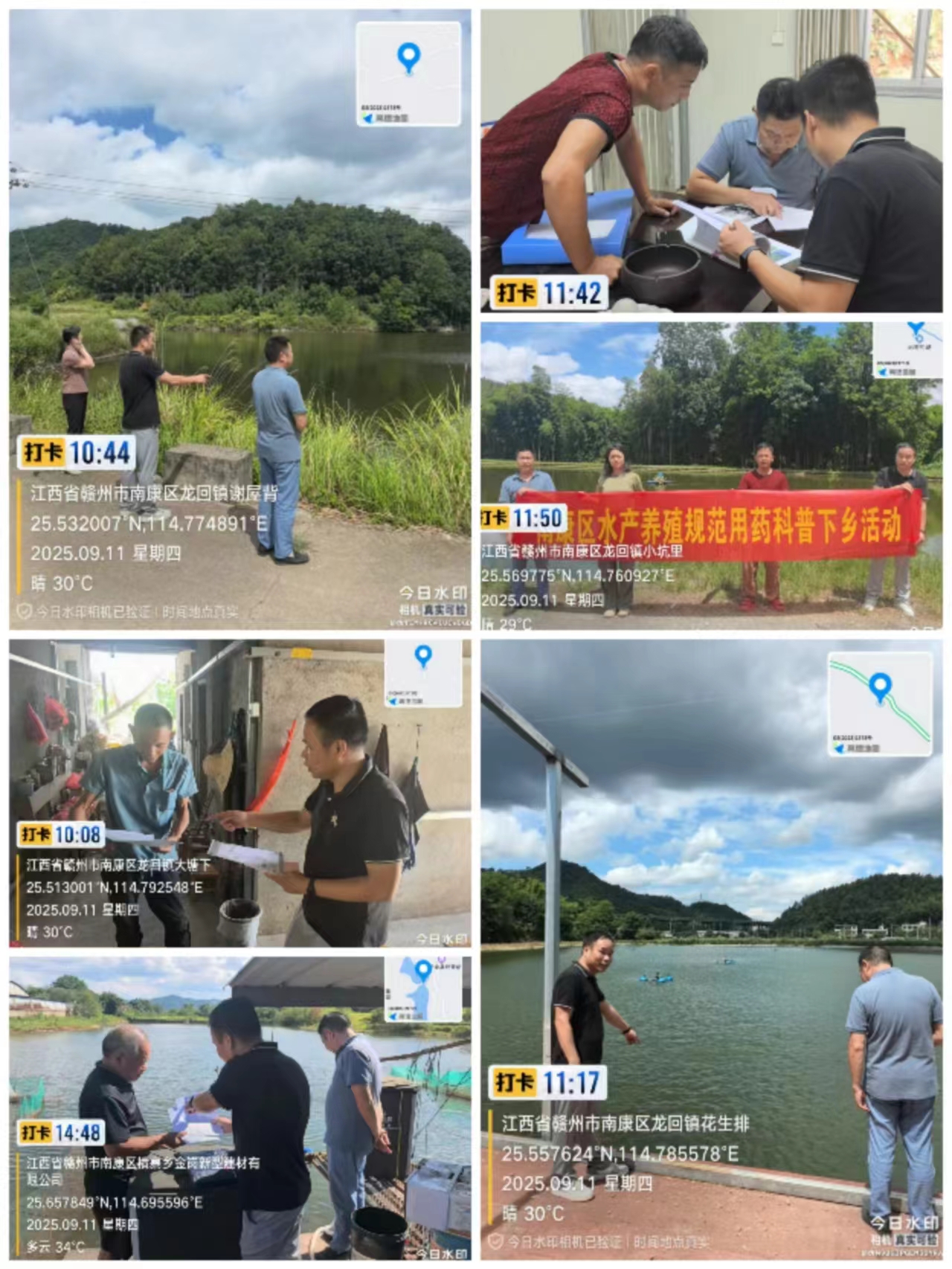 9月11日,渔业渔政股在龙回、横寨等地开展水产养殖规范用药科普下乡活动及池塘改造主项目主体摸排工作