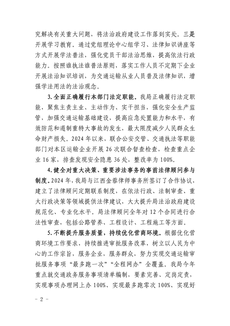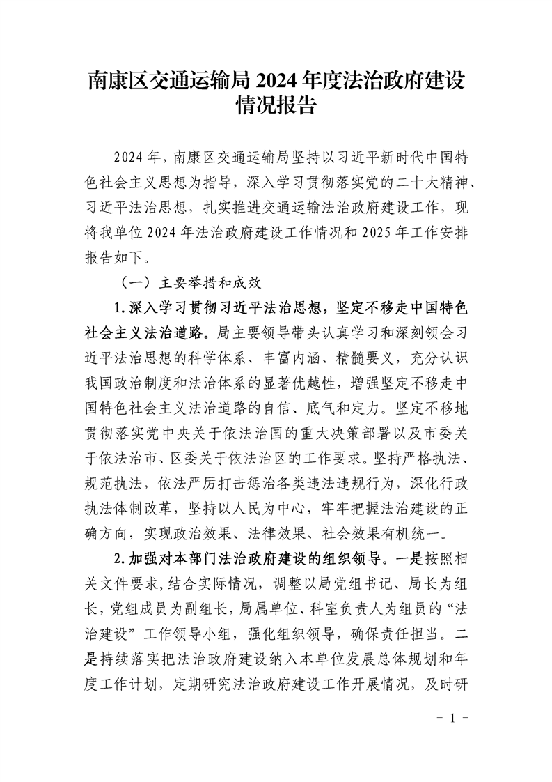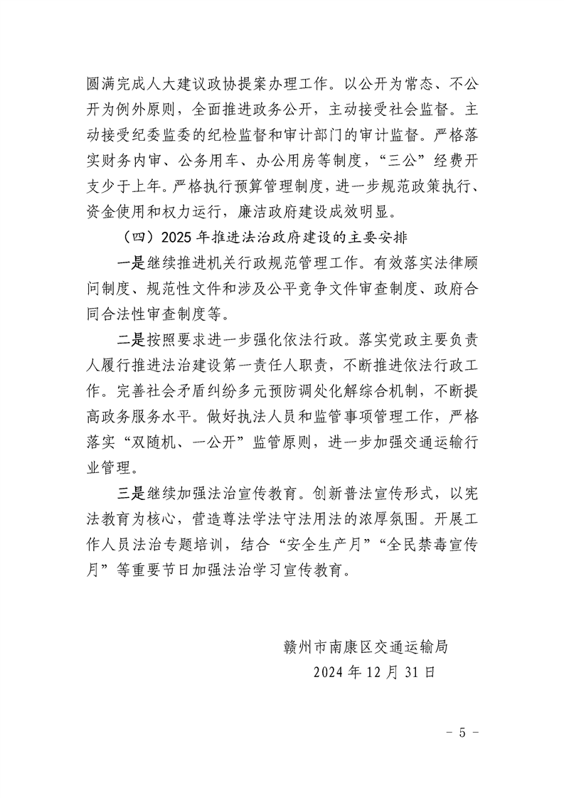 南康区交通运输局2024年度法治政府建设情况报告