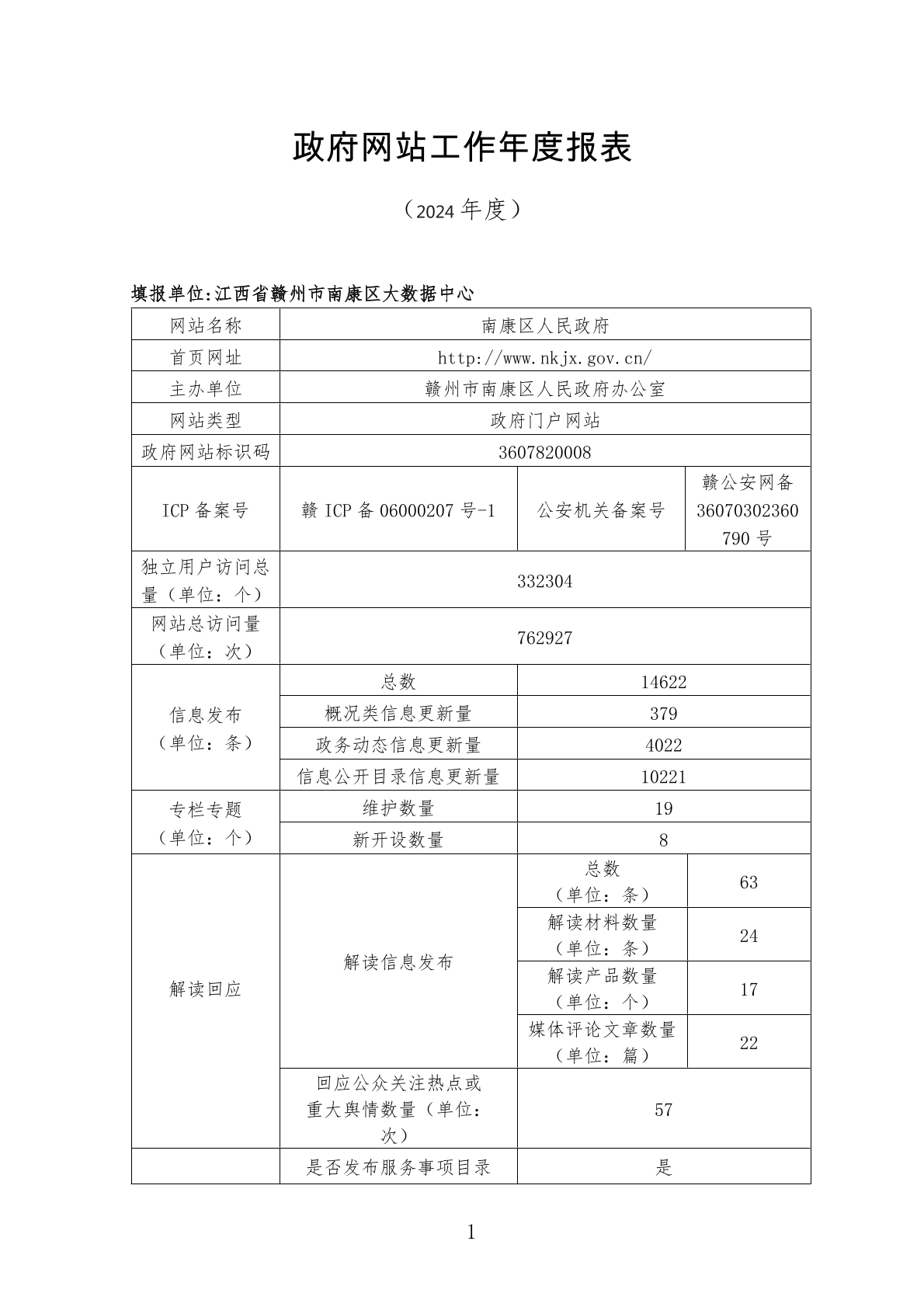 南康区人民政府网站工作2024年度报表